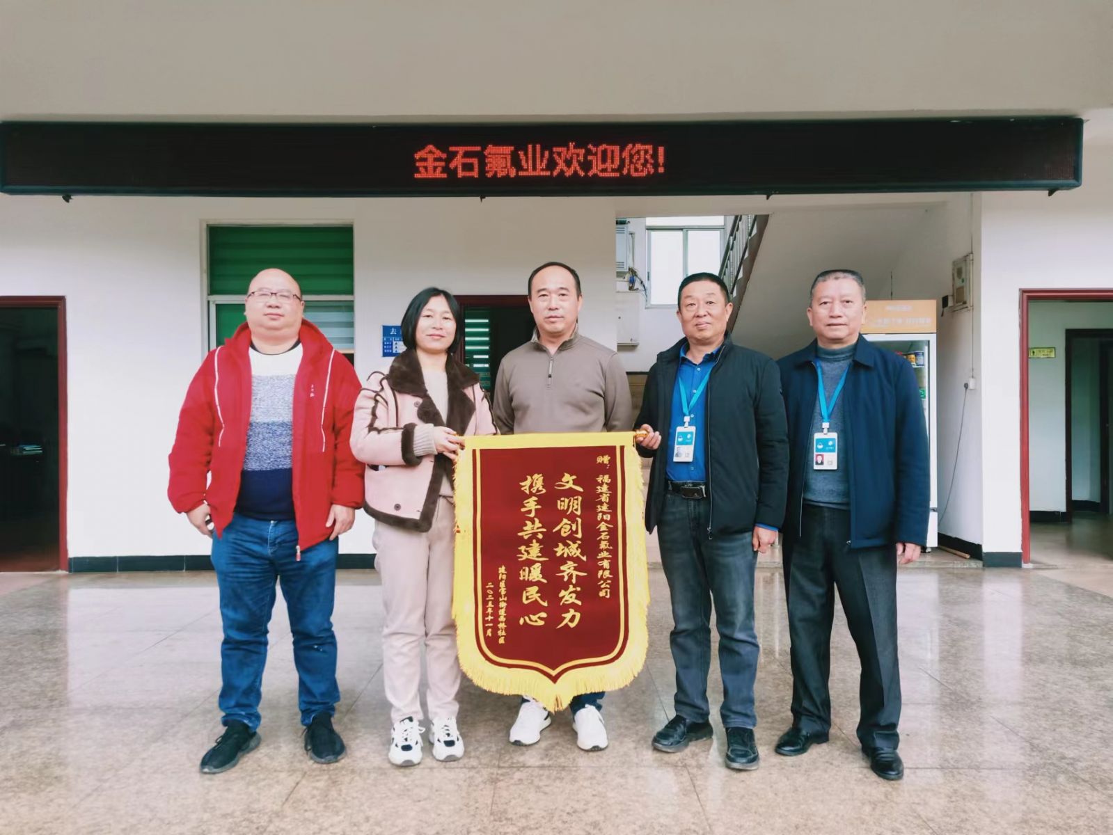 12月5日上午,建陽區(qū)寶山街道西橋社區(qū)居委會工作人員給公司送來“文明創(chuàng)城齊發(fā)力,攜手共建暖民心”錦旗,表達誠摯的謝意,居委會工作人員表示,社區(qū)一定會將愛心資金用到社區(qū)治理的實處,創(chuàng)建轄區(qū)優(yōu)美環(huán)境,助推全區(qū)創(chuàng)建文明城市工作。